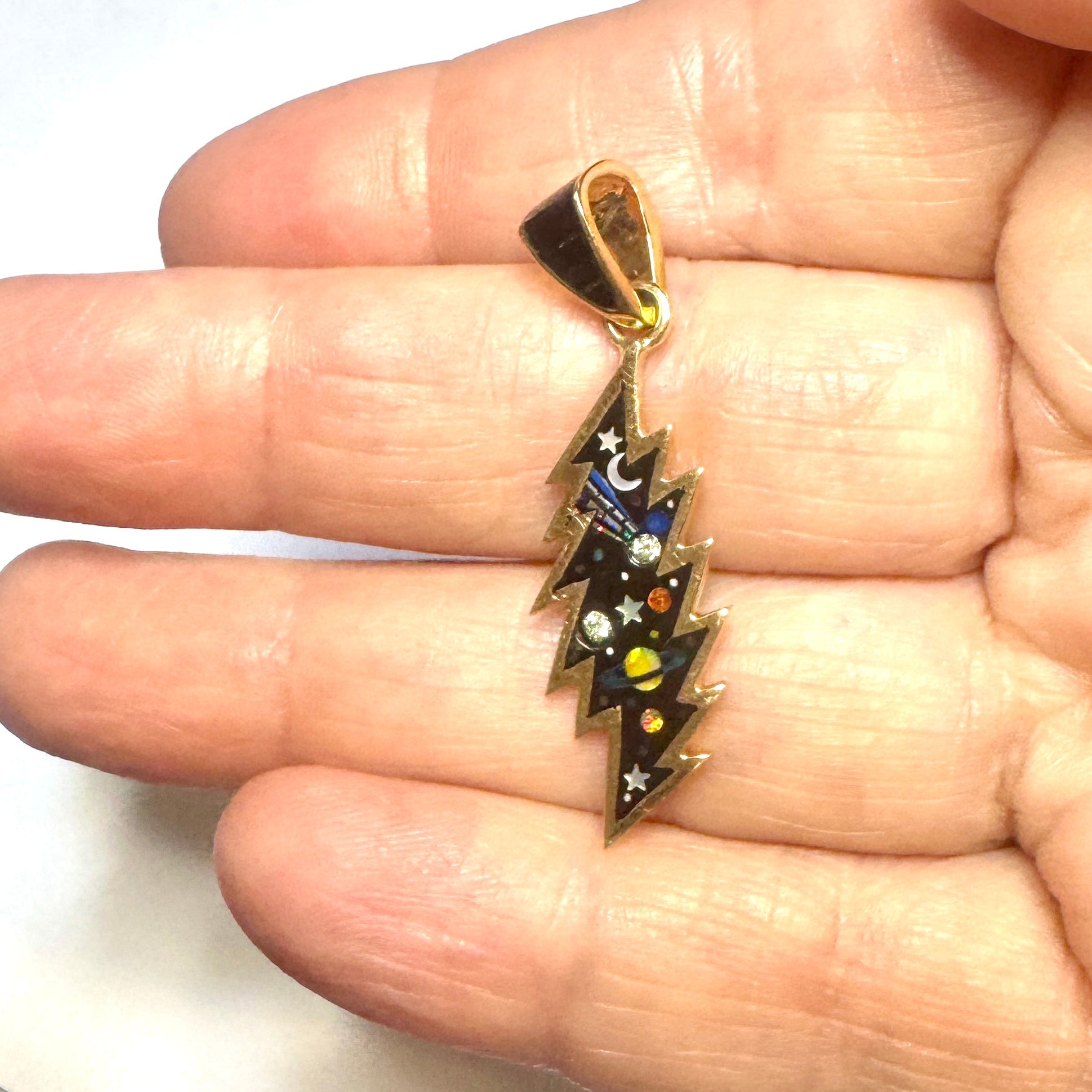 Double-Sided 14k Gold Bolt Pendant – Galaxy & Turquoise – Officially Licensed Grateful Dead