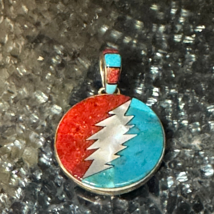 The Galaxy Bolt Pendant Collection celebrates the 13 Point Lightning Bolt in three striking variations, each bringing its own story, color, and spirit to one of the Grateful Dead’s most enduring symbols. Crafted in sterling silver with detailed inlay work, these pendants combine artistry with cosmic imagination.